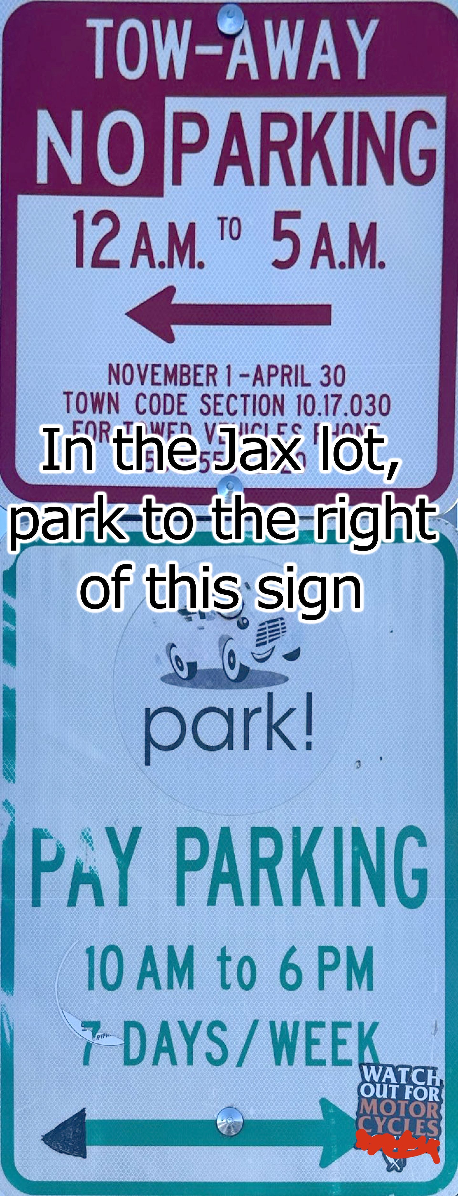 - You may park on the street or in the Jax parking lot for free between 6 PM and 10 AM.